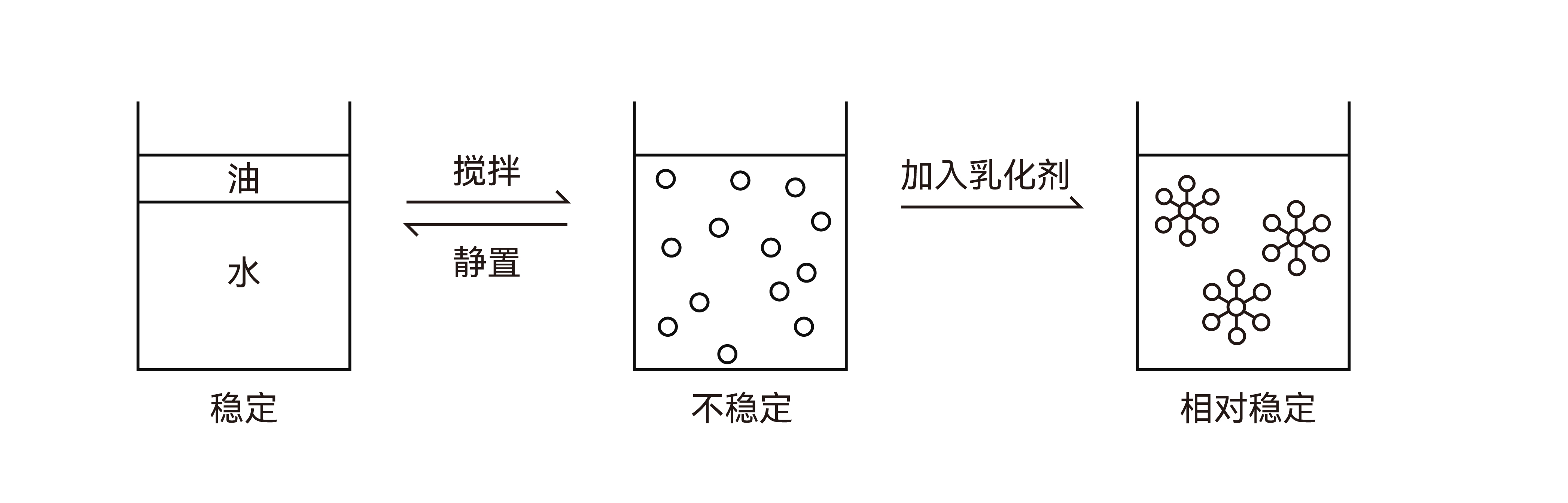 分層、變型和破乳。分層是由于分散相和分散介質密度不同,出現分散微粒上升和下沉的現象;變型是乳狀液類型突然發生轉變;破乳是乳狀液體系完全破壞,分層與變形可同時發生。